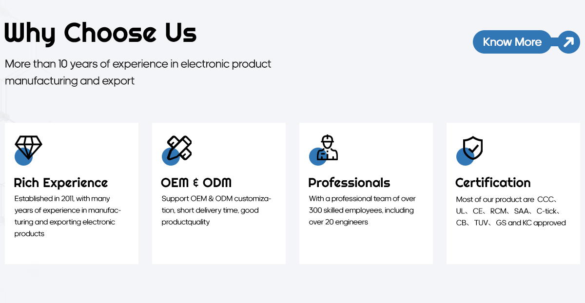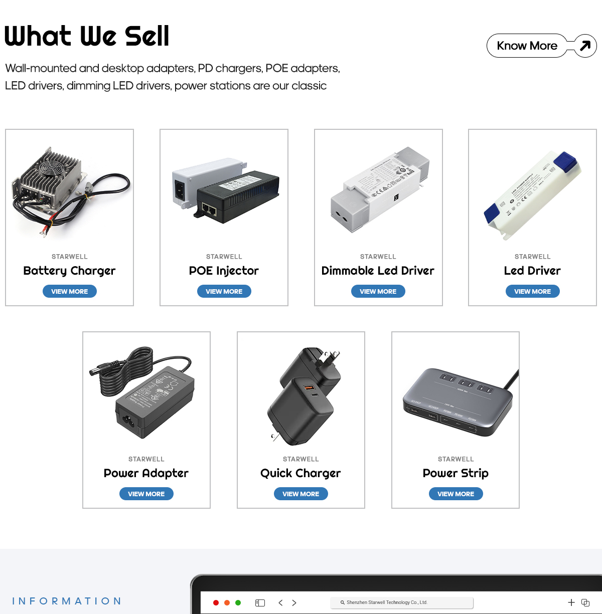 Principaux produits : Adaptateur secteur, chargeur pd, chargeur de batterie, pilote led dimmable, injecteur poe